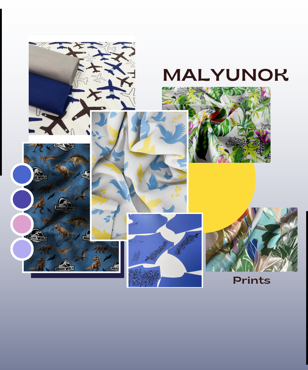 Компанія «Malyunok» - це виробниче підприємство з нанесення зображення на тканини методом сублімаційного друку (повнокольоровий друк на тканині та друк крою на рулонах тканини для швейного виробництва, виготовлення прапорів та декорацій, інтер'єрний та рекламний друк на тканині). Сучасне та високотехнологічне обладнання: принтери Epson SureColor SC–F 9400H, Epson SureColor SC–F 9400, Epson SureColor SC–F 7200, Epson SureColor SC–F 5010L, термопреси та масляний високопродуктивний каландр в сукупності з першокласними спеціалістами. у широкоформатному розмірі до 1,6м та запечатуванні рулонної тканини фотографічної якості.
